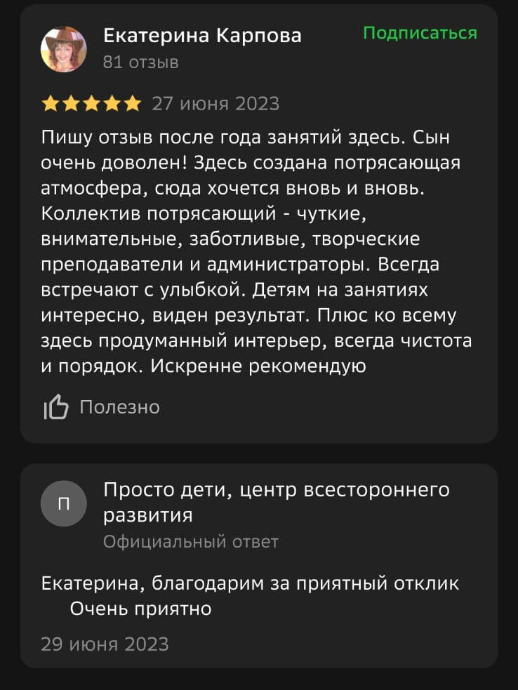 Также центр "Просто дети" предлагает дополнительные занятия: